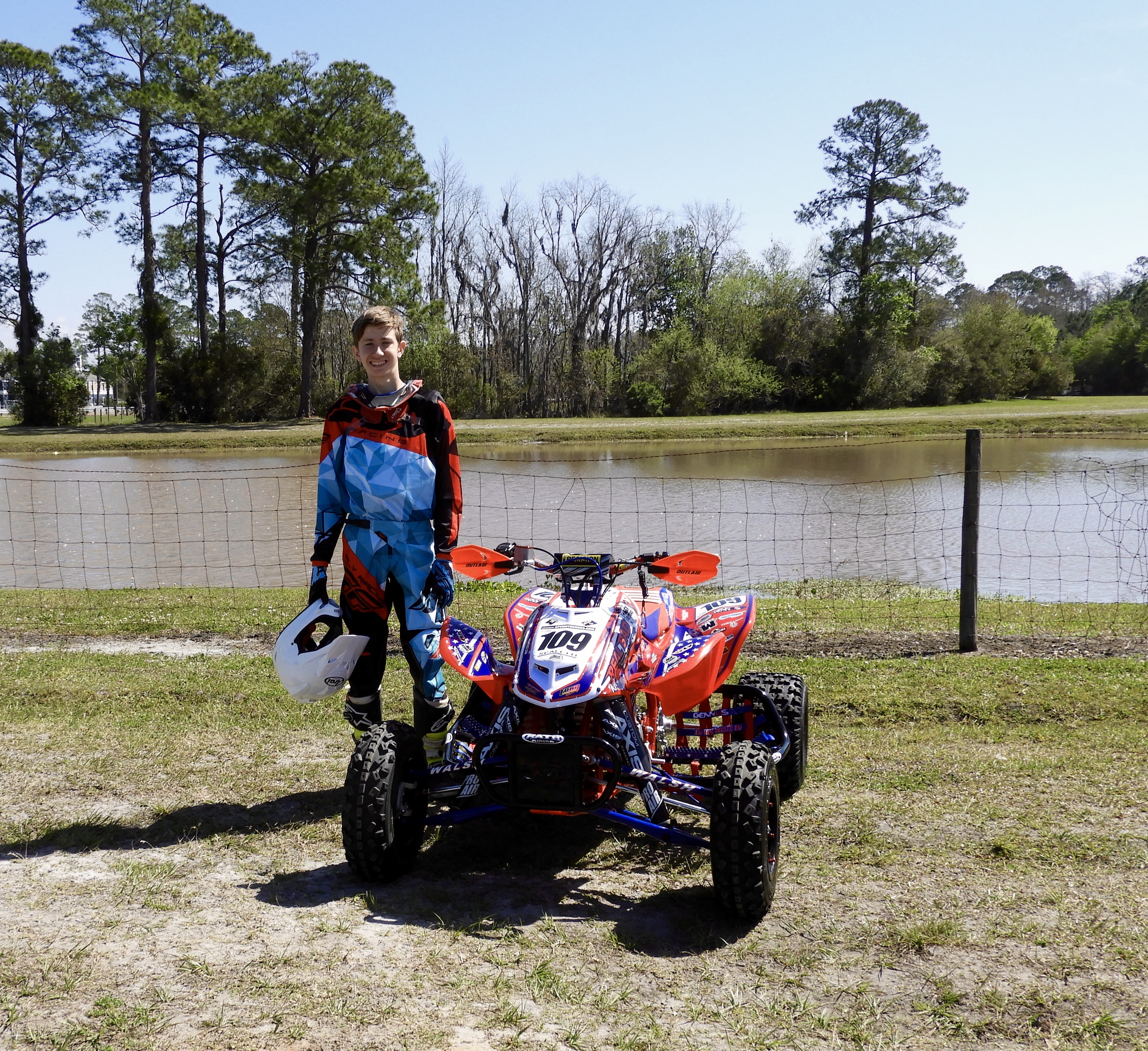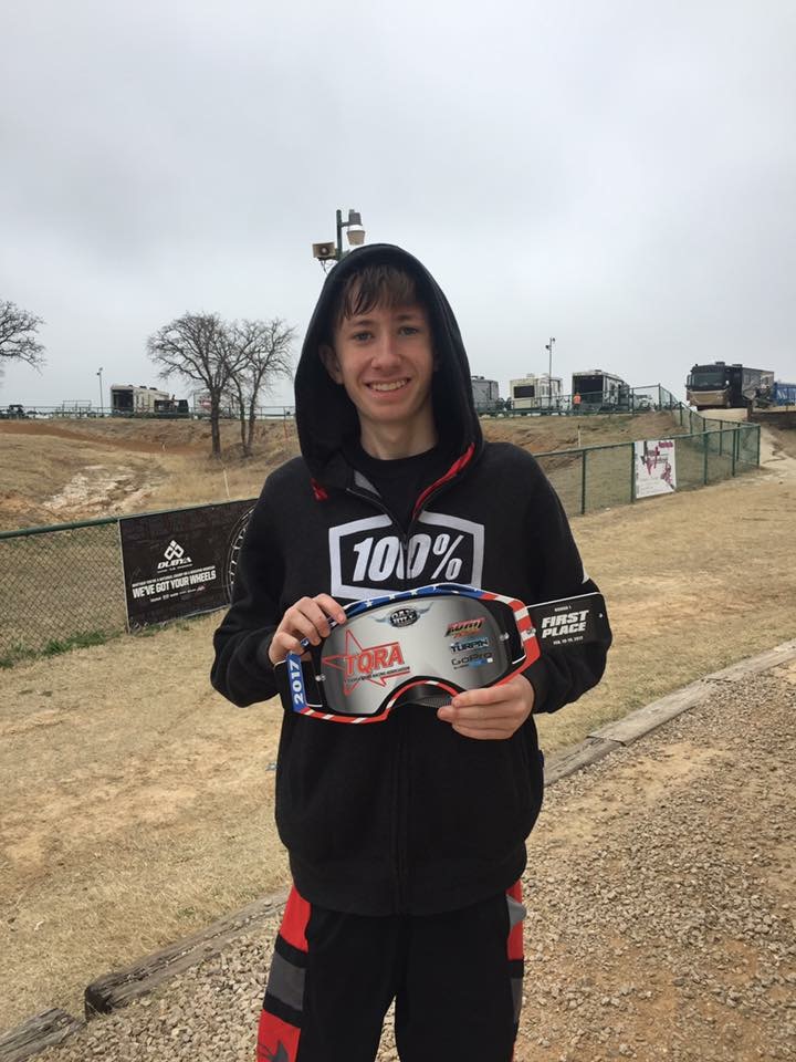 My first race of the season. I was a little nervous because this is my first race without my Mom and Dad taking me to the line. My mentor, Pro Nick Gennusa took me to the line for moto 1. I got the holeshot and won first place by a 30 second lead. Jon Ford took me up to the line for moto 2 and I got the holeshot and won first place again by a 30 second lead. I am feeling good about this year!