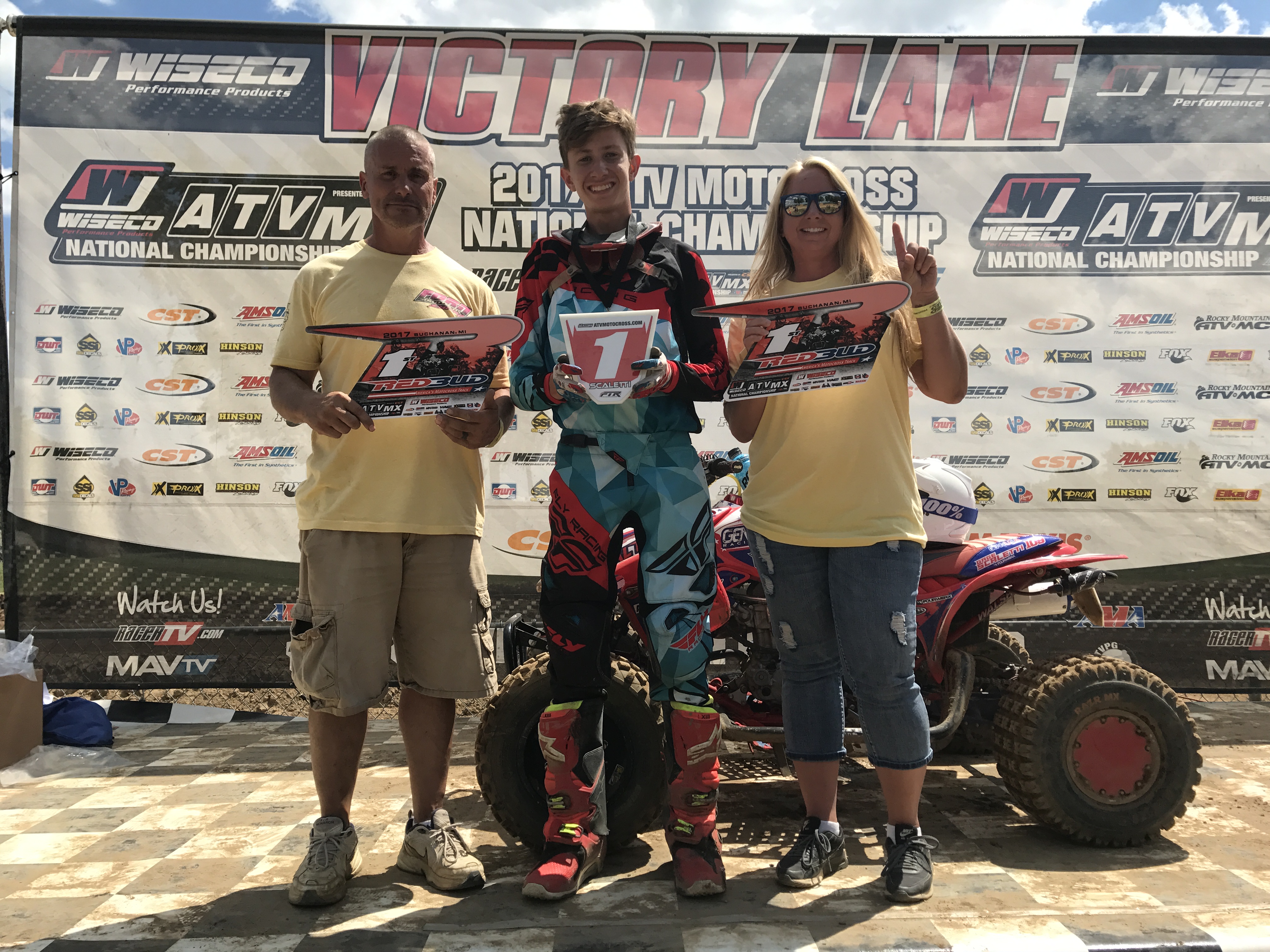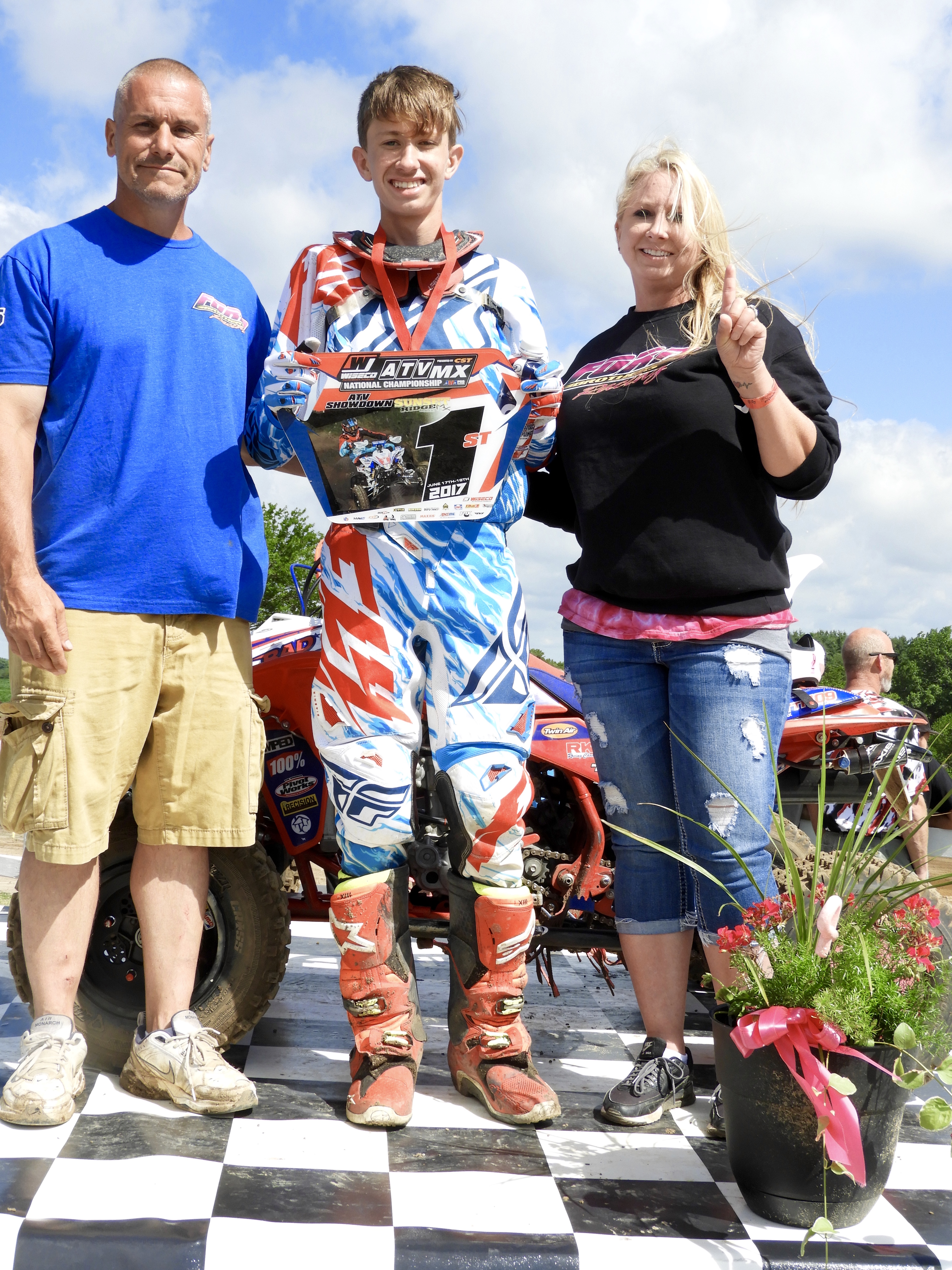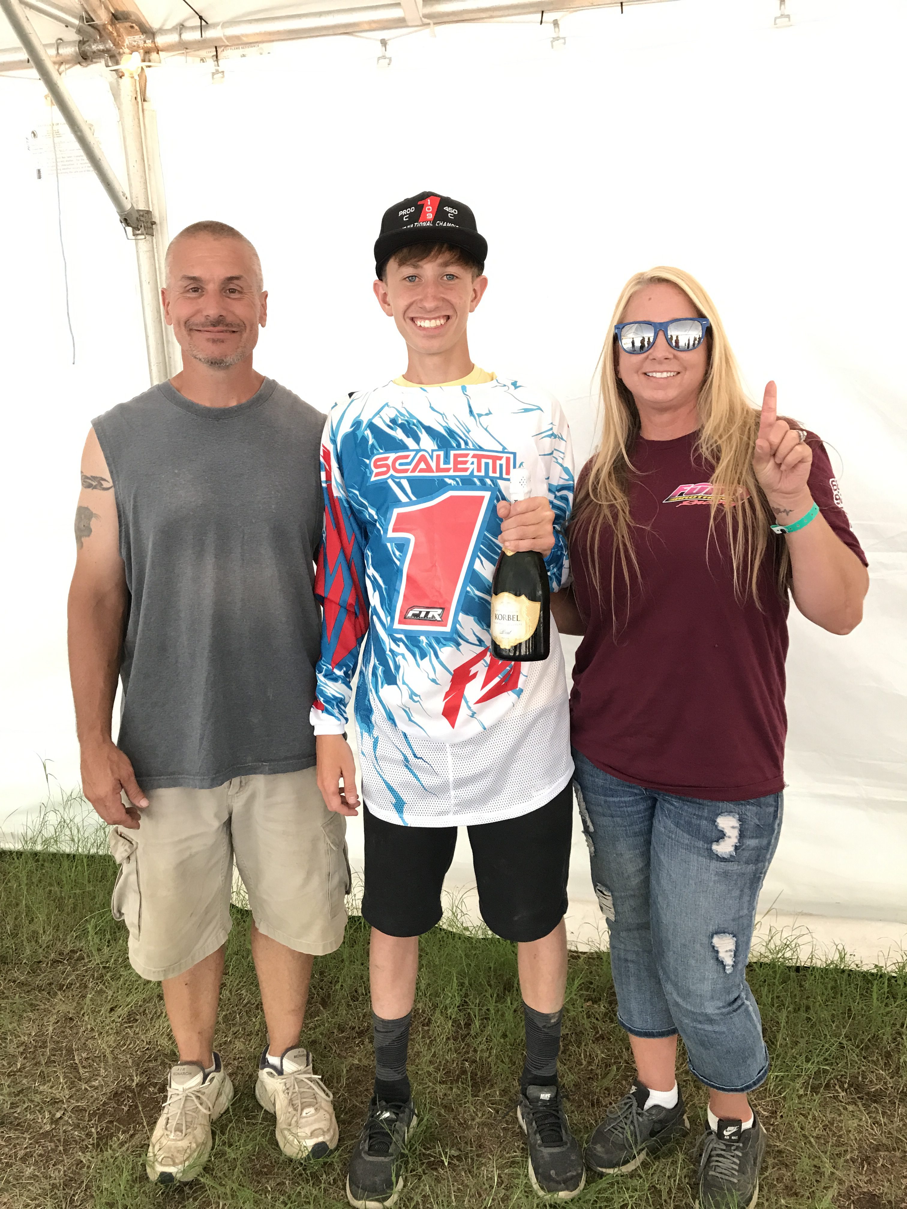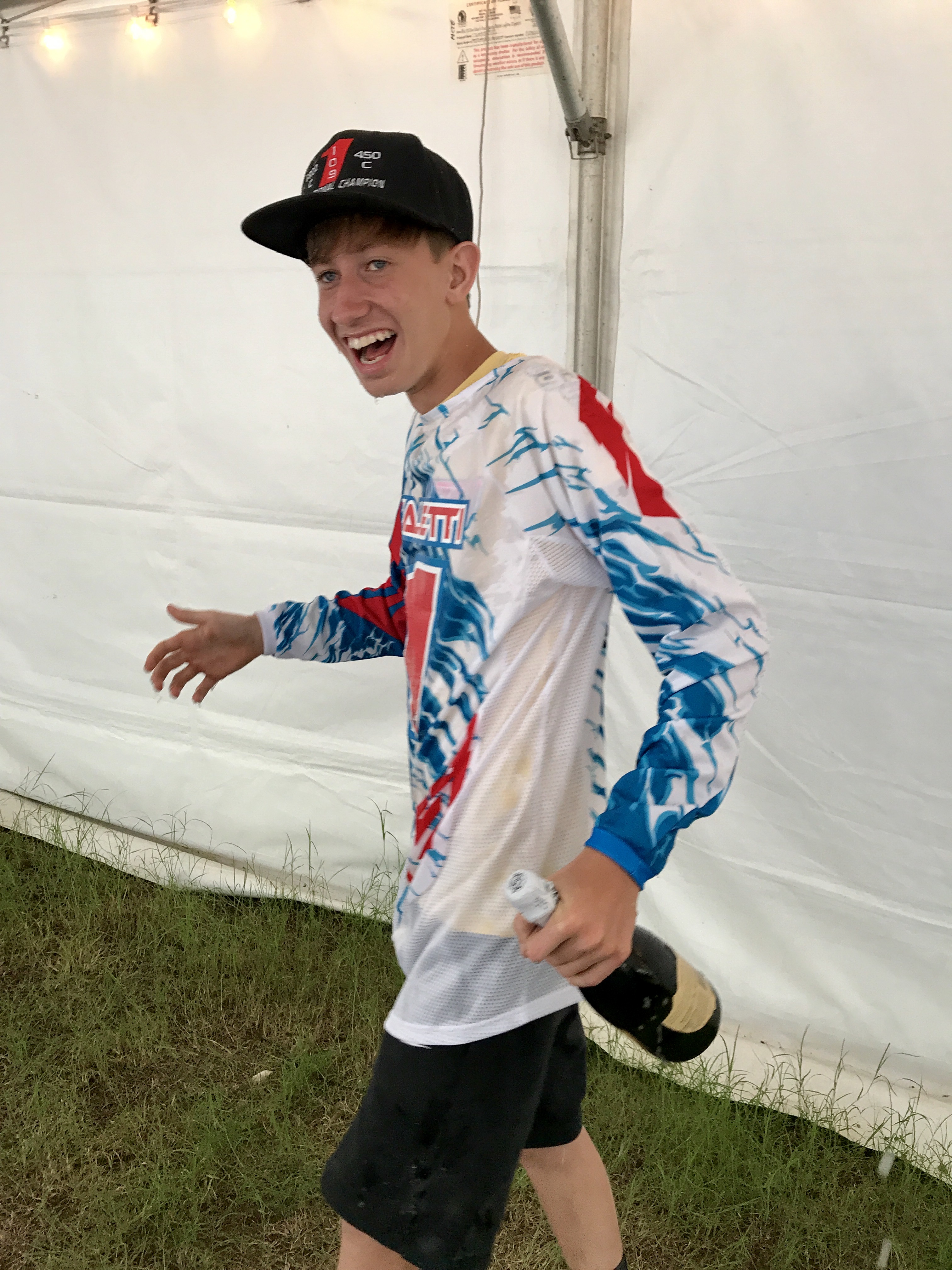 It felt so good being able to present my #1 plate on my bike. I had the championship locked already. I had a great day of practice on Friday but during Saturday’s practice, I crashed super hard on the 10 Commandments and ended up with some injuries that required me to go to the local hospital. Due to my injuries, I could not race the last race of the season. The race weekend was not all bad as my Mom and Dad and my Team, The Ford Brothers Racing Team gave me a #1 Jersey and I got to spray champagne over everyone. Even though I was upset about not being able to race, I had such a great time with my friends and family. I truly could not have done it without every one of them. Thank you to my Mom and Dad and to the whole Ford Brothers Team! I love you guys!